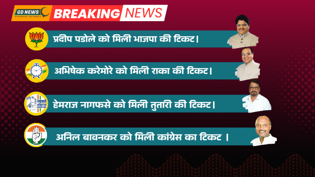 प्रदीप पडोले को मिली भाजपा की टिकट। अभिषेक करेमोरे को मिली राका की टिकट।हेमराज नागफसे को मिली तुतारी की टिकट।अनिल